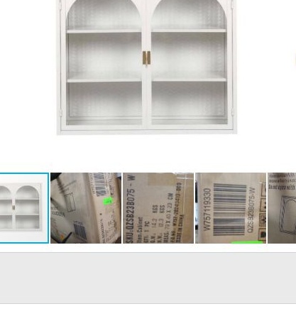 27.56 in. White Glass 2-Door 2-Shelf Wall Cabinet with 3-Tier Storage and Woven Pattern for Bathroom, Kitchen (Retail $214)