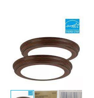 Commercial Electric 11 in. Dark Brown Wood 3CCT LED Round Flush Mount, Low Profile Ceiling Light (2-Pack)