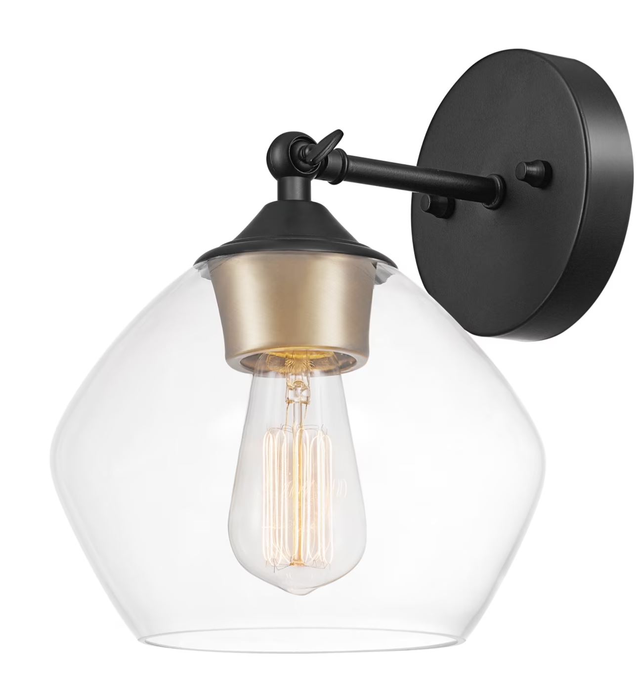 Globe Electric Harrow 1-Light Matte Black Wall Sconce with Clear Glass Shade, 51367