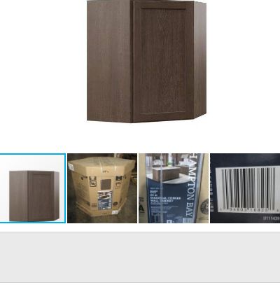 Hampton Bay Shaker 24 in. W x 12 in. D x 30 in. H Assembled Diagonal Corner Wall Kitchen Cabinet in Brindle (retail price $179)