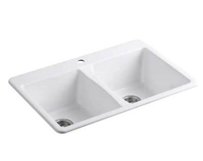 KOHLER Deerfield Drop-In Cast Iron 33 in. 1-Hole Double Bowl Kitchen Sink in White (Cosmetic Damaged) (Retail Price $314)